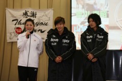 カラダがすっぽり入る大きなスチールパイプの輪っかを使って演技するんですよ。 見たら「あ〜知ってるー、見たことある!」って頷くでしょう。 そのラートからは、日本をリードする素晴らしい三人のプレイヤーが来てくれました。 左から吉田 望選手、吉川泰昭選手、山城秀彬選手。 ![]() 日本人最年少でラート世界選手権出場、 そしてUSA National Open Championshipにて優勝された望さん。 吉川さんも世界選手権でメダル獲得、 そしてラスベガスでの公演など世界の舞台で活動されています。 そしてそして山城さんも世界選手権で活躍(みんな本当にすごい!!) マッスルミュージカルにも出演されてたパフォーマーで、 春には望さんと一緒にミュージカル、サムライ・ロック・オーケストラにも出演されます。 ![]() ニコやかにマイクを持ってグルグル周りながら登場の望さん。 簡単に見えるけど、体重を支えてるの足だけですよ! ものすごいバランス感覚と強靭な体幹です!! ![]() ラートを鮮やかに操る望さんの技に、大人も子ども完全に心を奪われました。 もう感動して鳥肌が立ちっぱなしでした。 さあ、次は子どもたちの番だよ! ![]() 小さなラートに乗って実際に回ってみる。 ドキドキだけどみんなすごい笑顔! ![]() ふたりで腰掛けてシーソーのように遊んだりもできるんですね! たくさんの子どもたちがラートを楽しみました。 あれ? ![]() マギーさん、グルグルすごい勢いついてますよーっw |