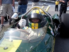 スピードウェイで2台のデモラン走行をしました。 ![]() No.83を駆ったのはジミー・バッサー。 ゆっくりだったけど、すっごくいい音でしたよ! ジミーと一緒に走れたのも感動でした。 そしてそして… ジャジャーン、本邦初公開! 今回僕がレースで被るINDY500スペシャルヘルメットです。 ![]() 右サイドには今年の僕のマシーン。 左サイドにはジム・クラークのマシーンが描かれています。 ![]() オールドロータス乗っちゃったもんね!