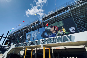 迎える第105回インディ500に先駆けて、インディアナポリスモータースピードウェイ(IMS)のゲート2では、佐藤琢磨の写真使用された巨大バナーが掲出されました。